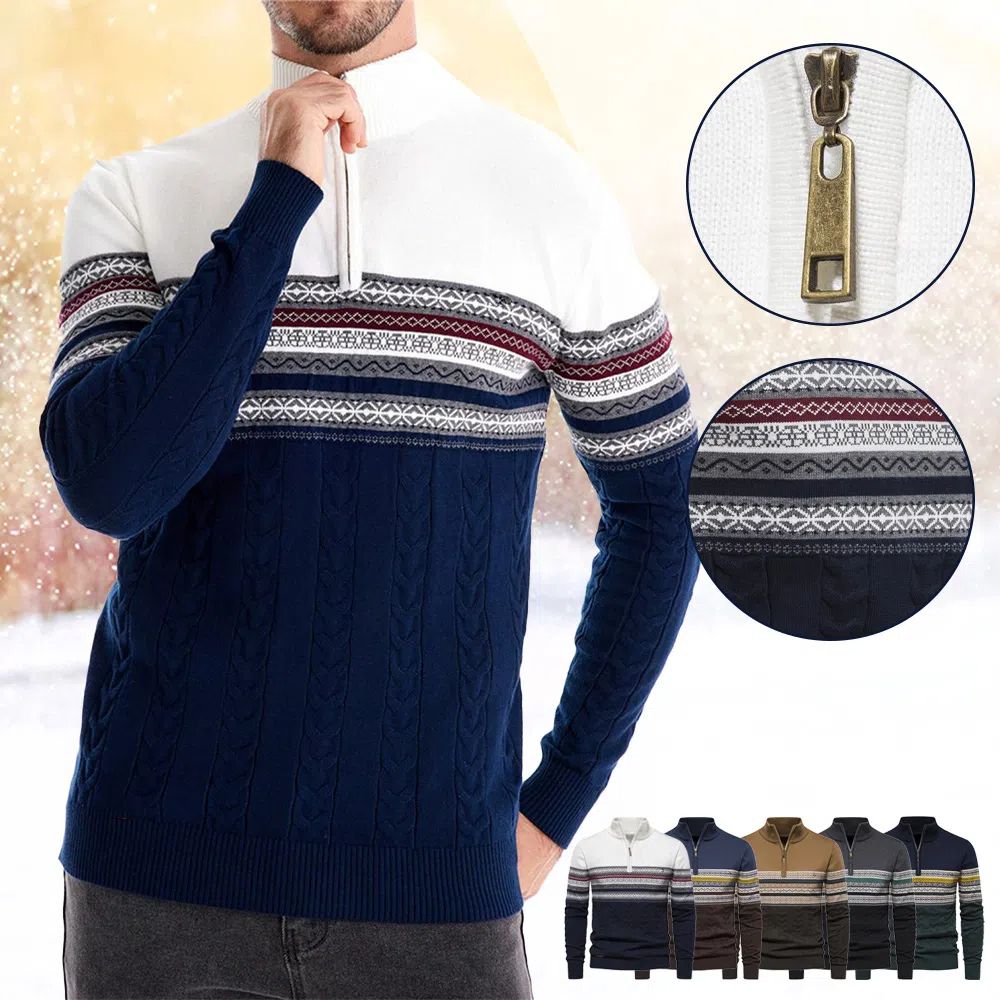 1* Colorblock-Jacquard-Pullover mit halbem Reißverschluss für Herren