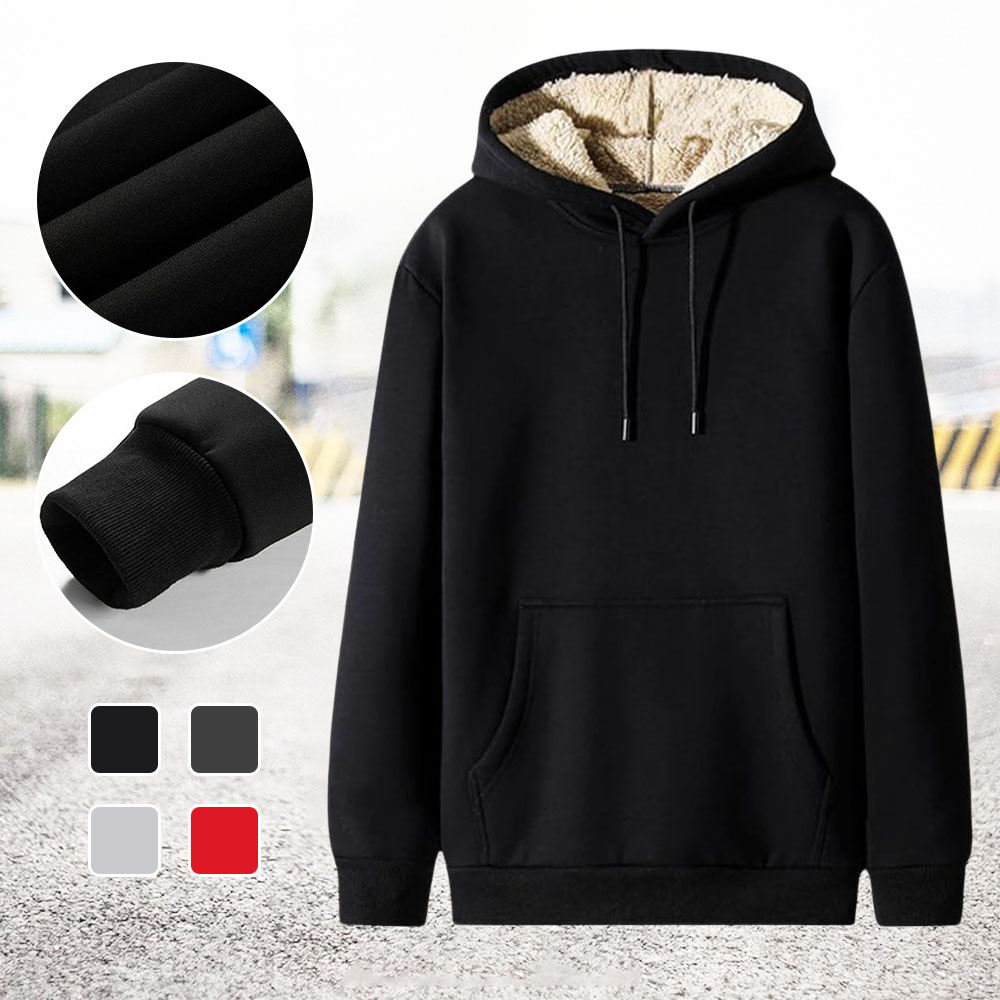 Einfarbiges dickes Herren-Sweatshirt mit Kapuze