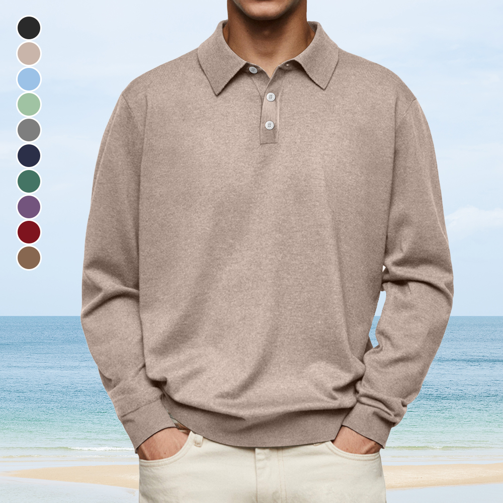 Einfarbiges lässiges Langarm-Poloshirt für Herren