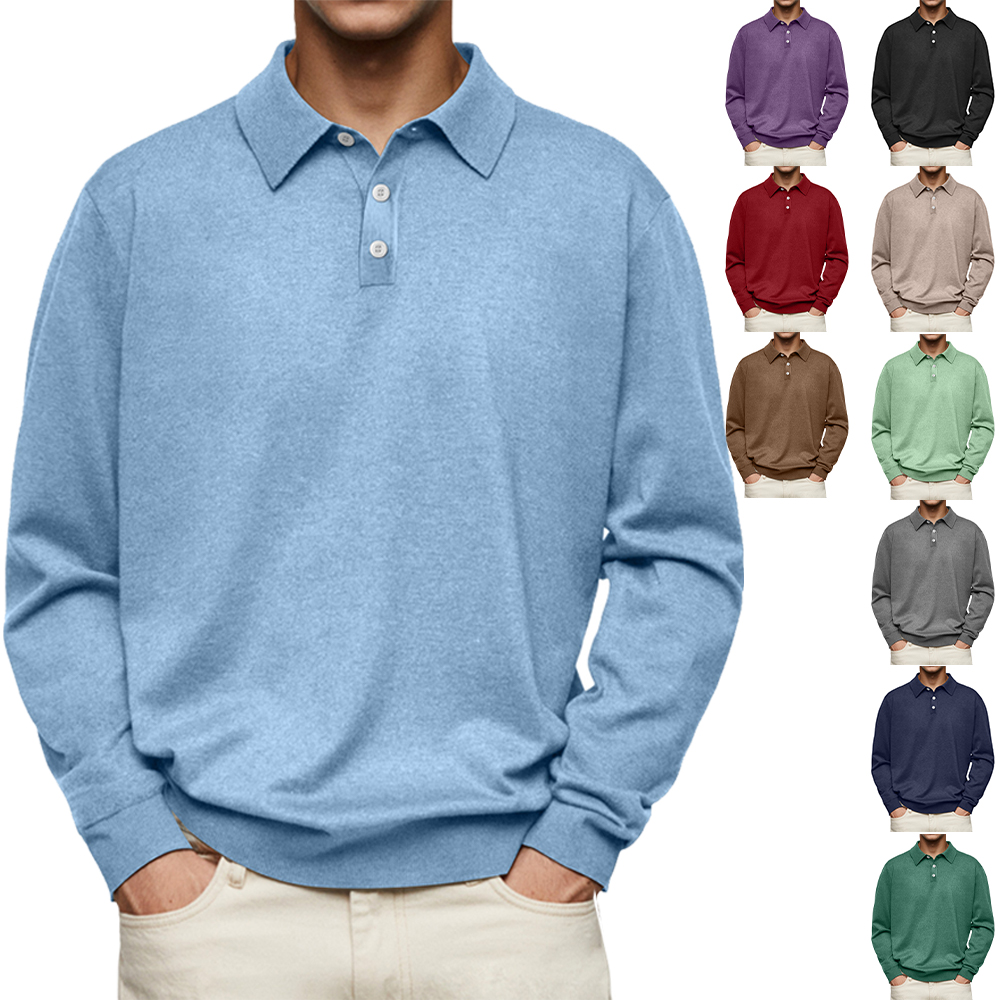 1* Einfarbiges lässiges Langarm-Poloshirt für Herren