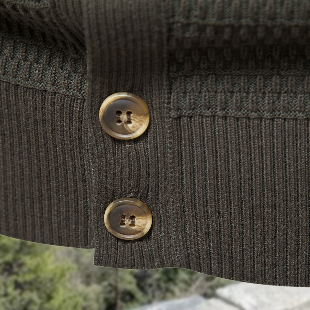 Dieser Herren-Cardigan besteht aus gestricktem Stoff mit feinen Nähten und klarer Textur. Weich und angenehm zu tragen. Der klassische Stehkragen strahlt eine smarte Ausstrahlung aus. Die Knopfleiste lässt sich leicht an- und ausziehen und kann je nach Bedarf angepasst werden. Gerippte Bündchen und Saum sorgen für Windschutz und Wärme. Klassische und ruhige Farbe, geeignet zum Kombinieren mit Jeans, Freizeithosen und Anzughosen.