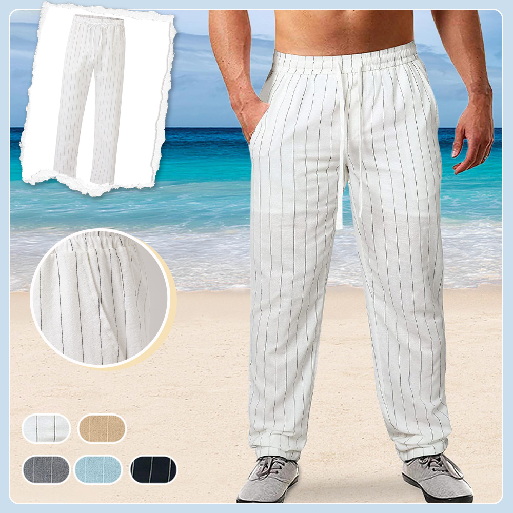1* Gestreifte Freizeithose aus Baumwolle und Leinen für Herren