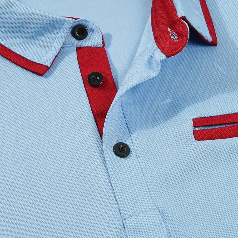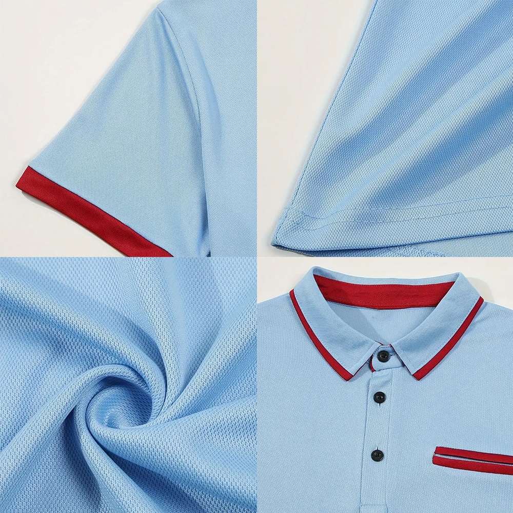 Geeignet für eine Vielzahl von Szenarien: Ob Reisen im Freien, zwanglose Treffen oder der Weg zur Arbeit, dieses modische Poloshirt mit kurzen Ärmeln in Kontrastfarbe für Herren ist Ihre beste Wahl.