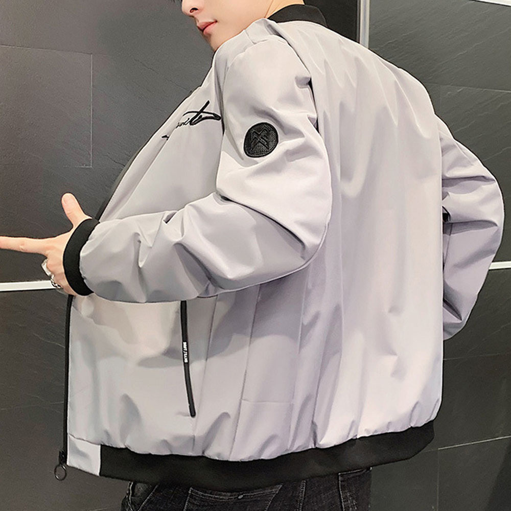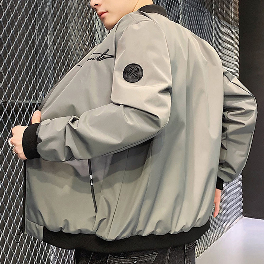 1*Herren Herbstmode bestickte lässige winddichte Stehkragen-Reißverschlussjacke