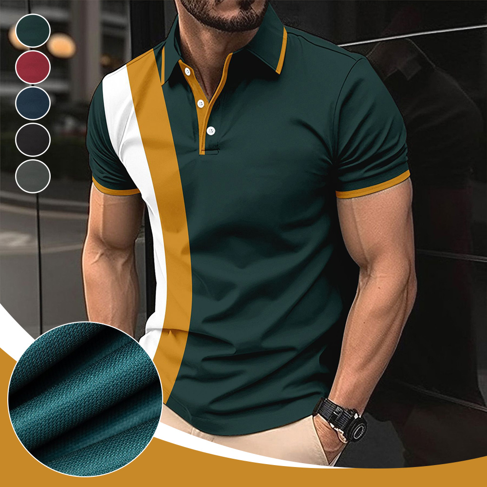 Herren Kurzarm-Revershemd mit Colorblock-Design