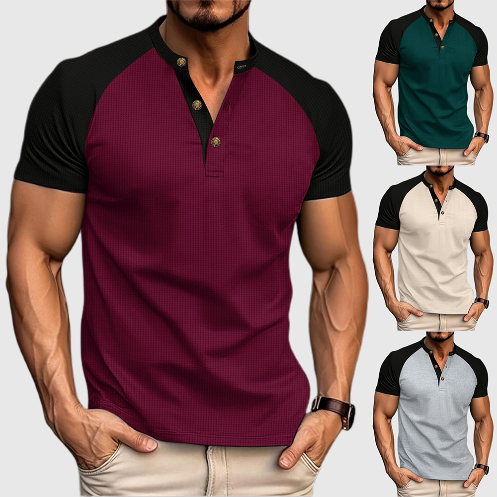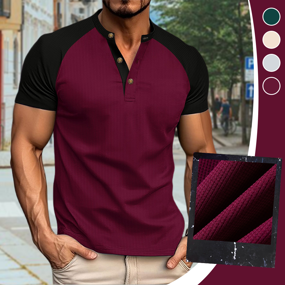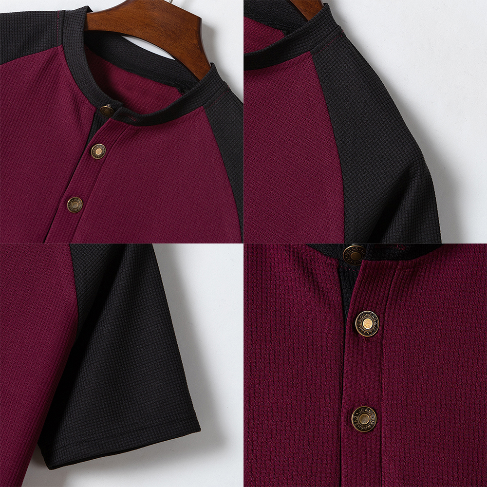 Versionsdesign: Die Manschetten sind in zwei verschiedenen Farben gestaltet, was schlicht und modisch ist und den Sinn für Kleidungsdesign verstärkt. Die Waffelstruktur des Stoffes verstärkt die Haptik der Kleidung. Durch das Design der halben Knopfleiste können Sie das Kragendesign nach Belieben anpassen und so den Tragekomfort erhöhen.