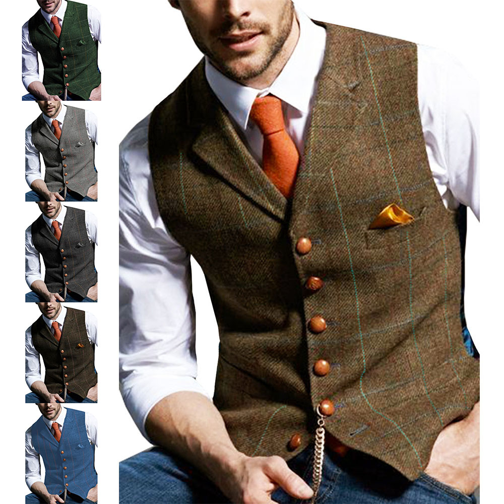 1* Klassische karierte Freizeit-Businessweste für Herren
