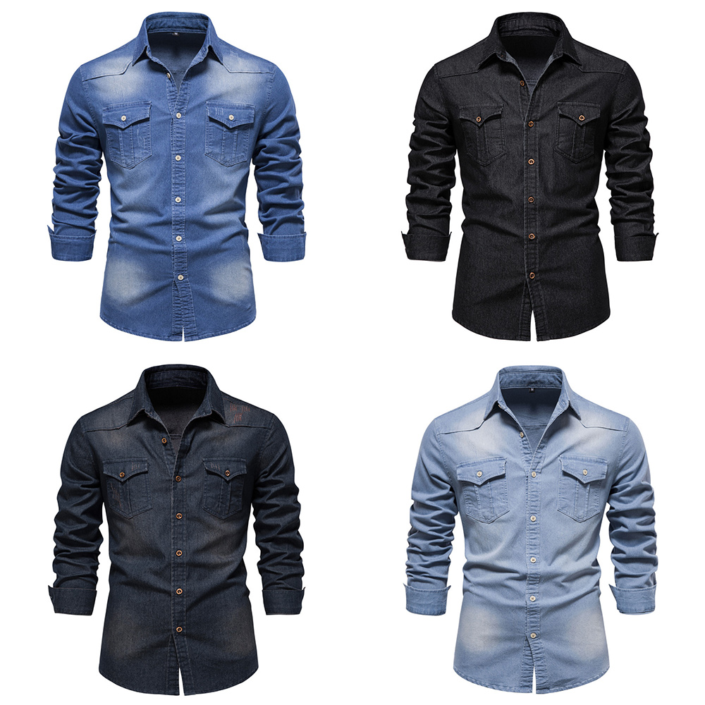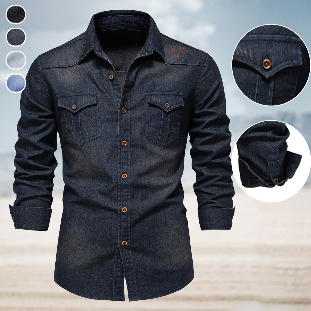 Dieses Jeanshemd für Herren ist in vier Farben erhältlich, und jede Farbe ist klassisch und vermittelt eine ruhige und unaufdringliche Atmosphäre.