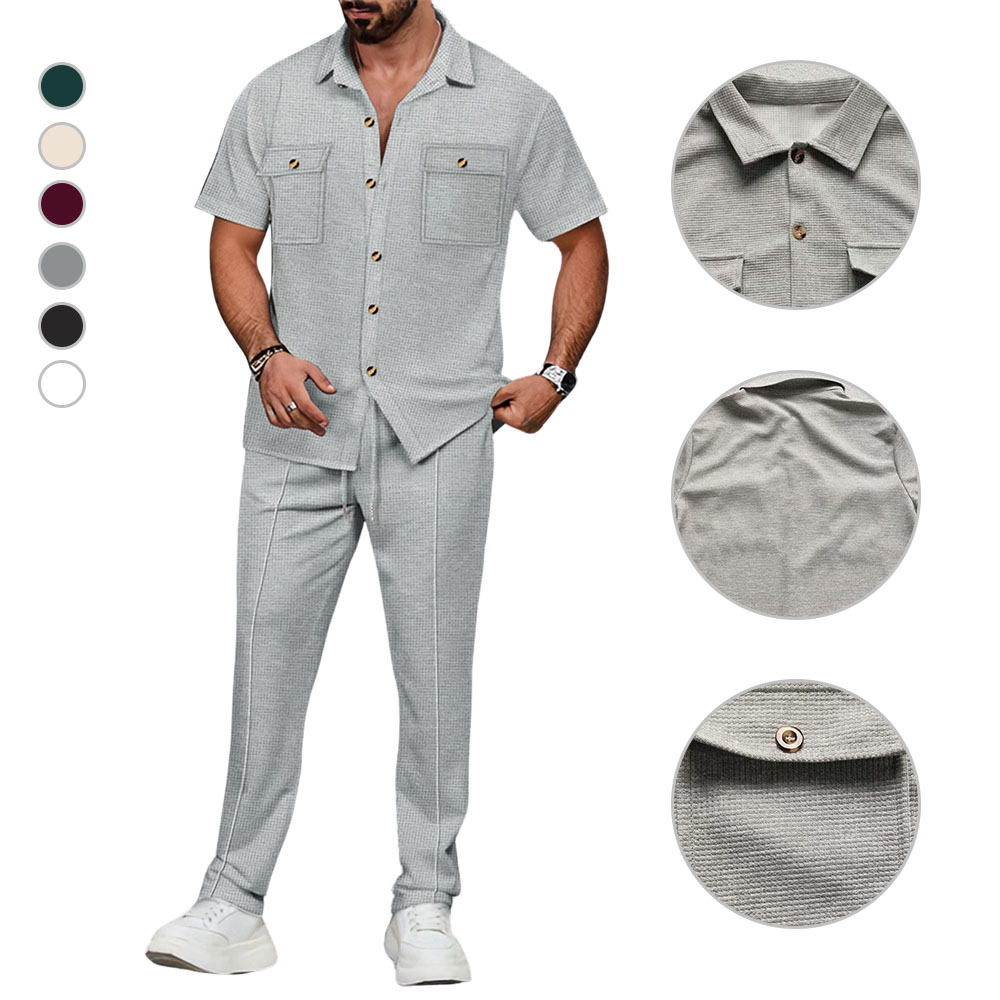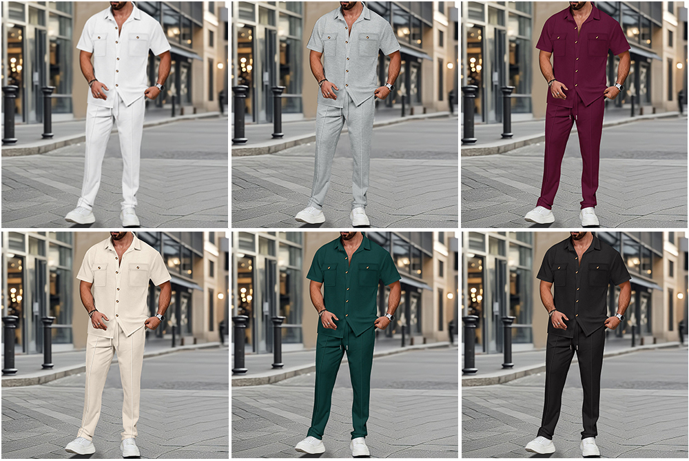 Klassisches Design in gleicher Farbe, modisch und vielseitig. Das Reversknopfdesign verleiht einen Hauch von Stil und lässt sich leicht an- und ausziehen. Die Kombination aus kurzen Ärmeln und langen Hosen hält Sie auch im heißen Sommer kühl.