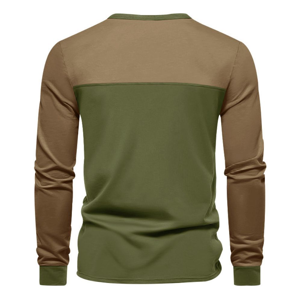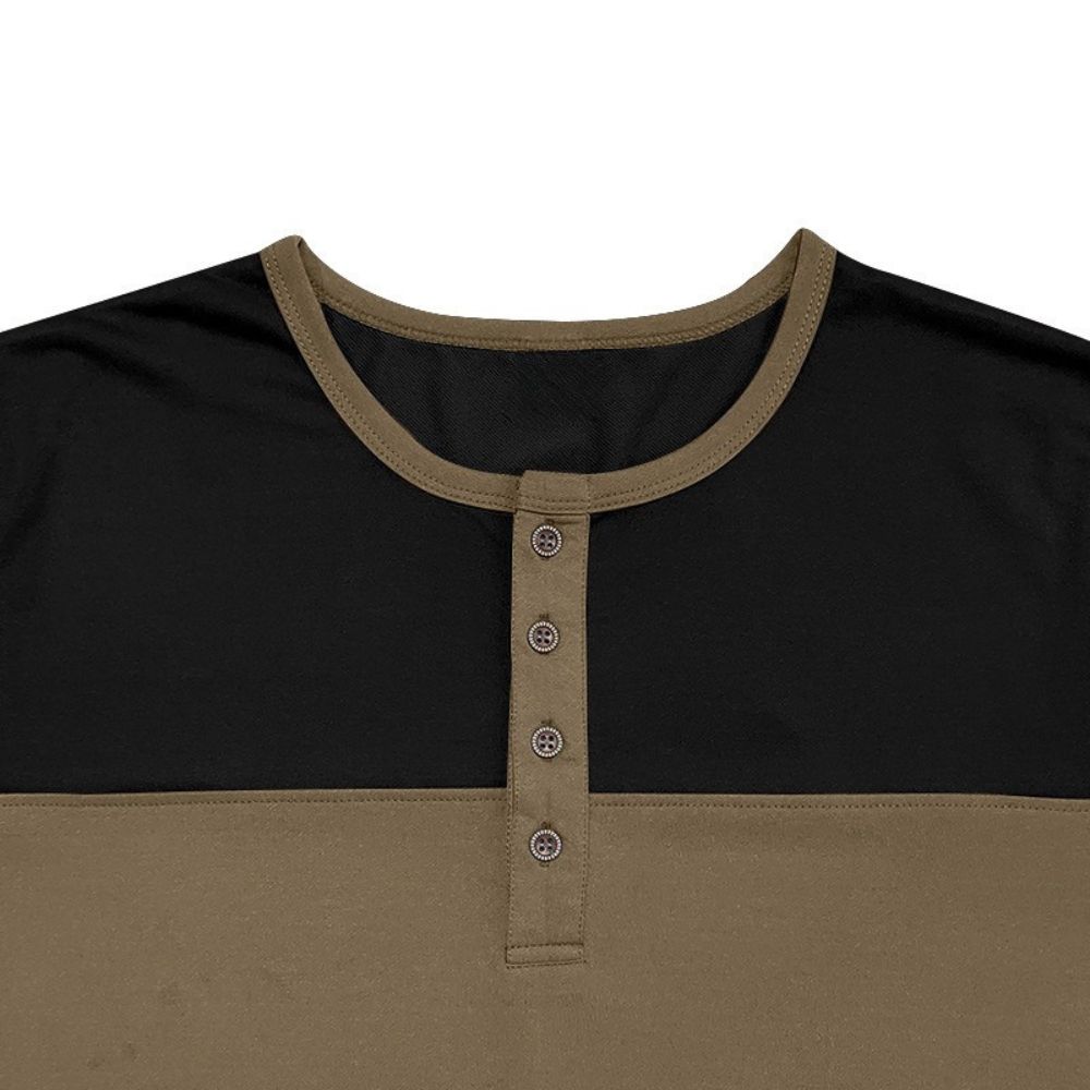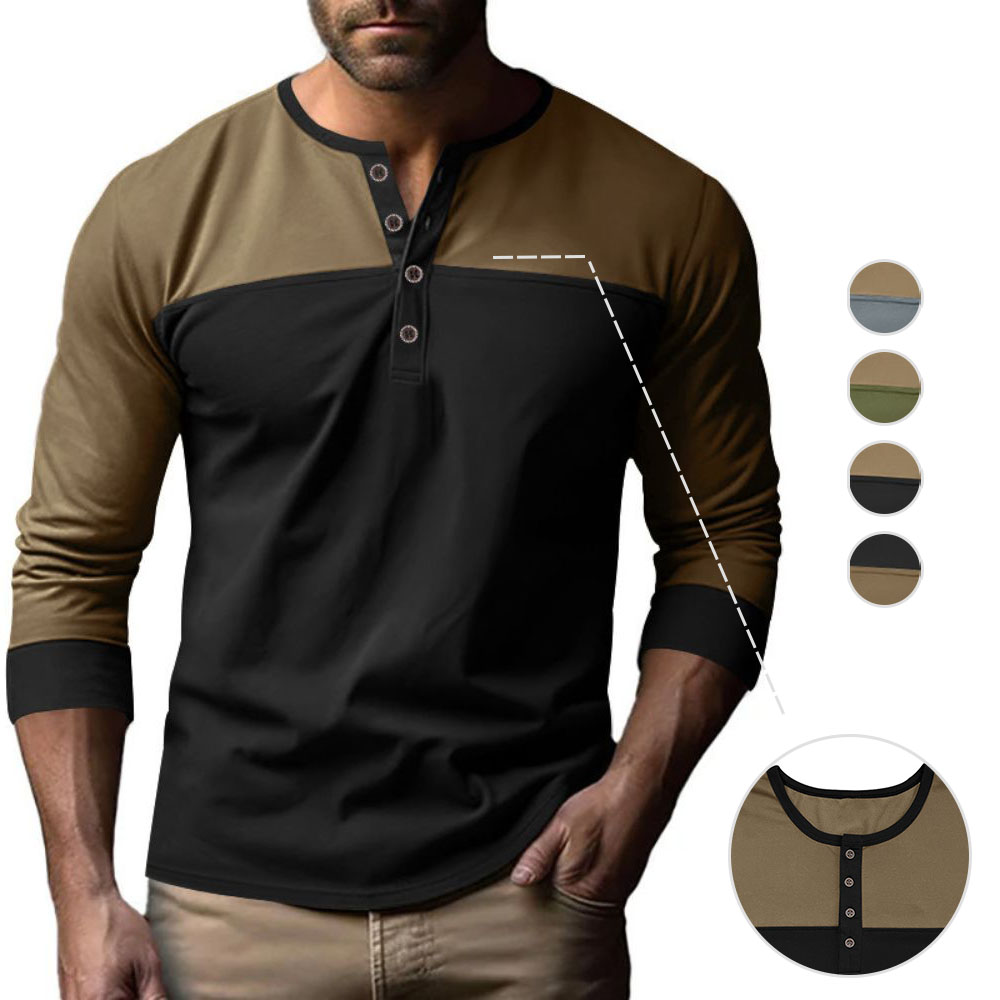 1 x Langarm-T-Shirt mit Henley-Kragen und Farbblock für Herren.