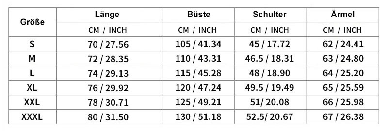 Baumwollmaterial, angenehm zu tragen, atmungsaktiv und pillingfrei. Die Ärmel haben genau die richtige Länge, sodass Sie bequem die Hände heben oder sich bücken können.