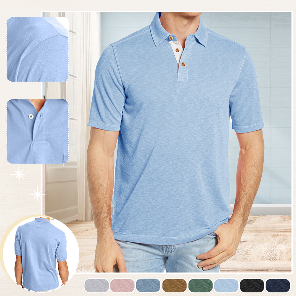 1* Leichtes atmungsaktives Kurzarm-Poloshirt für Herren