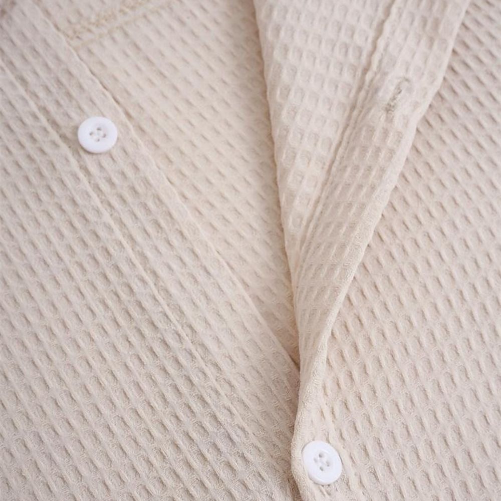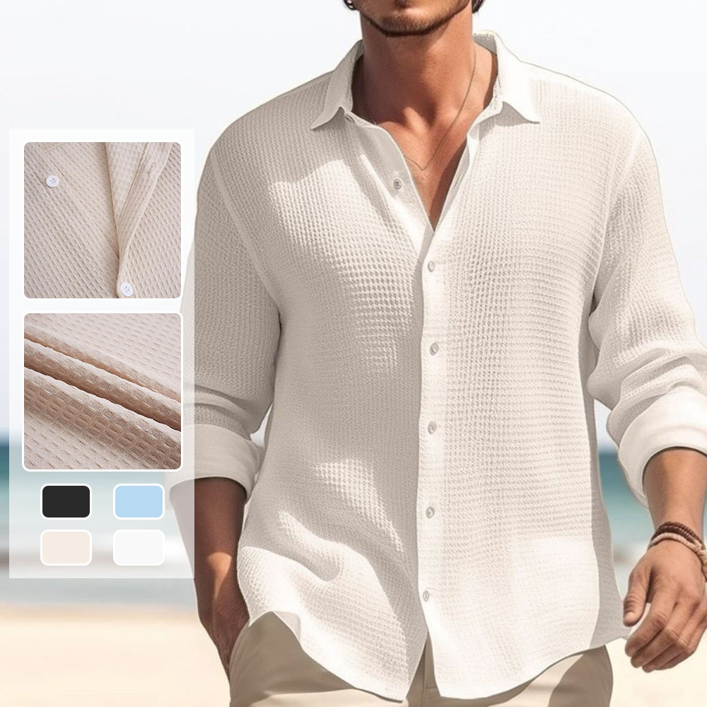 Lässiges einfarbiges Langarmhemd mit Waffelmuster für Herren