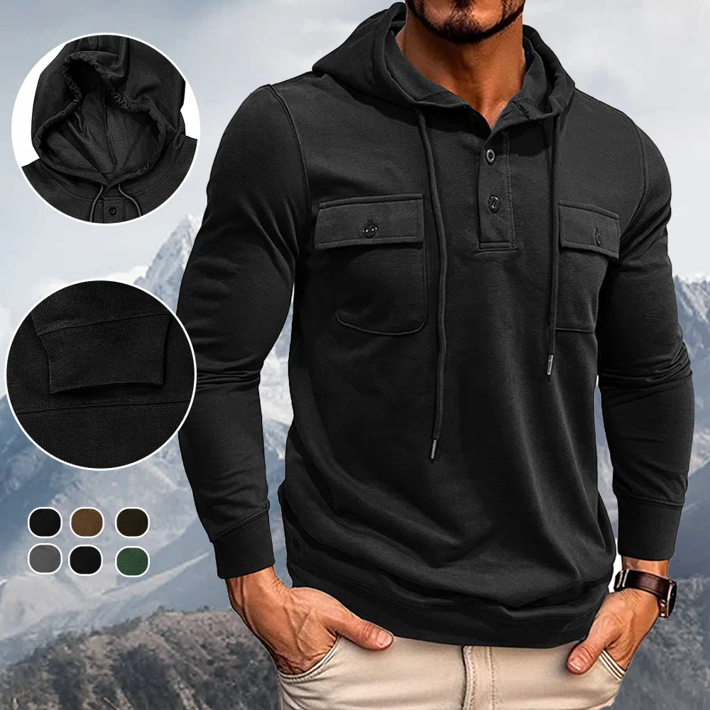 1* Lässiges Kapuzen-Sweatshirt mit Knopfleiste für Herren