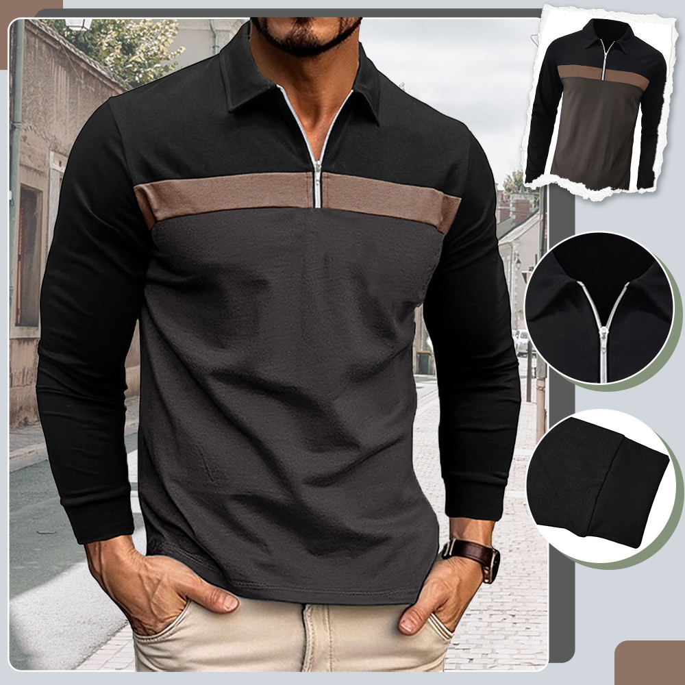 1* Lässiges Langarm-T-Shirt mit Reißverschluss für Herren