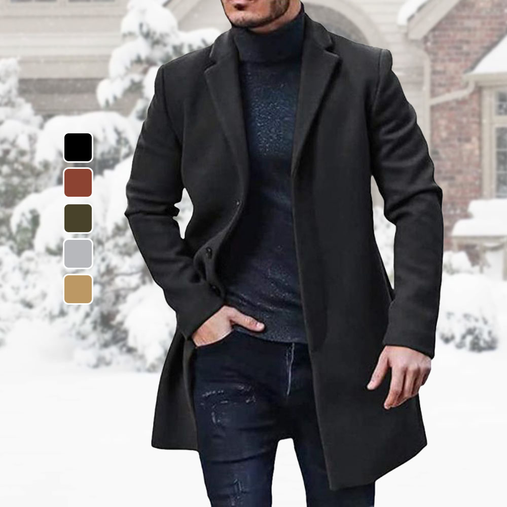 1* Mittellanger, einfarbiger Herrenmantel mit Revers