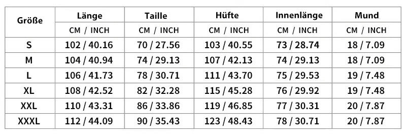 Größentabelle: