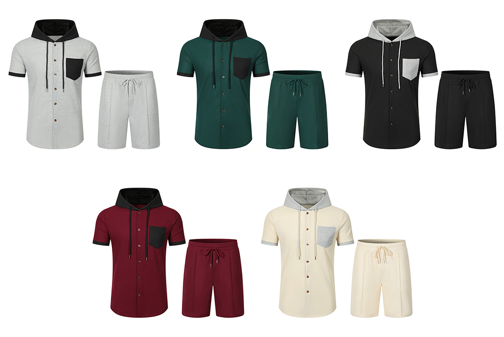 Klassisches Ton-in-Ton-Design mit schwarzen oder grauen Akzenten. Das Kapuzendesign verleiht einen Hauch von Mode und die Kombination aus kurzen Ärmeln und Shorts hält Sie auch im heißen Sommer kühl.