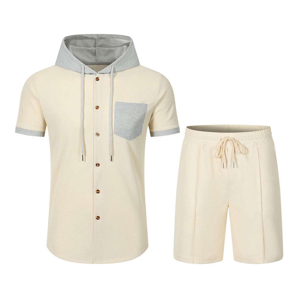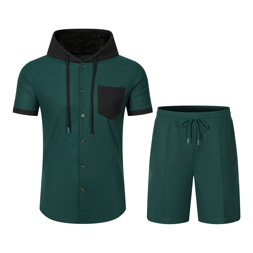 1 * Modisches Kurzarmhemd mit Kapuze + Shorts mit Kordelzug, Sportanzug