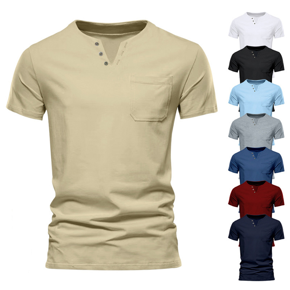 1* Modisches Herren-Sport-Oberteil mit V-Ausschnitt und einfarbigen Kurzarm