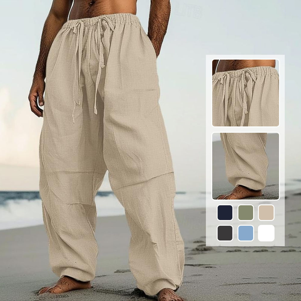 1* Freizeithose aus Baumwolle und Leinen mit weitem Bein für Herren