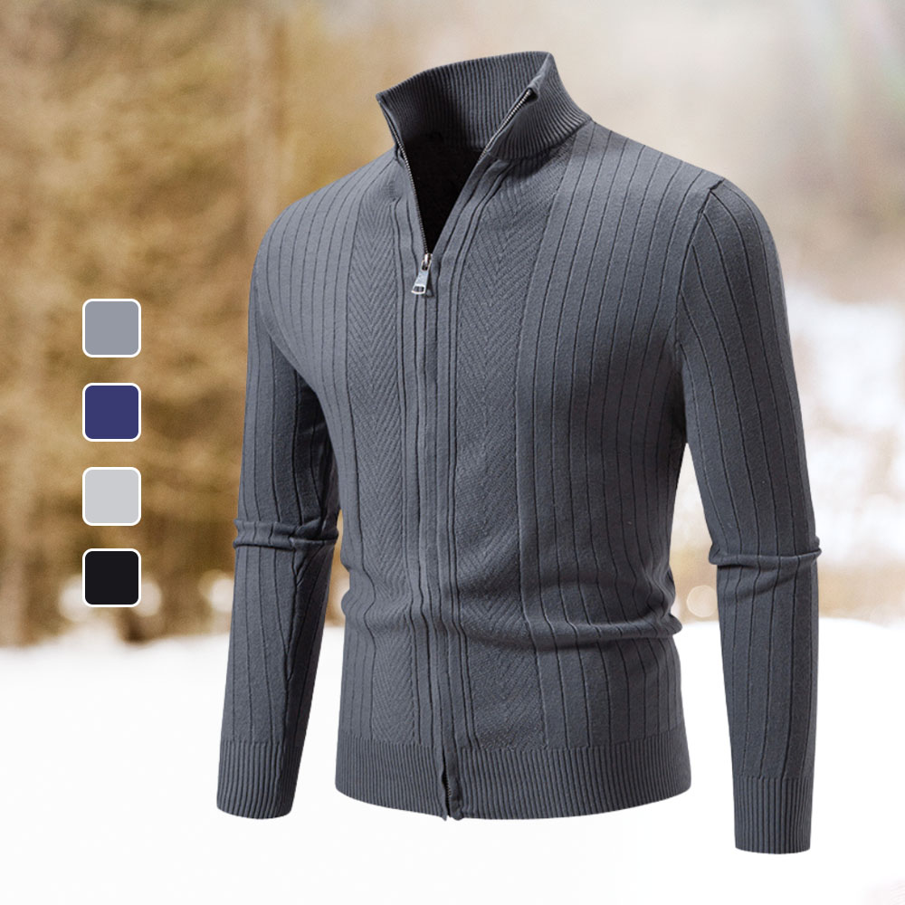 Warme Jacquard-Strickjacke mit Stehkragen für Herren