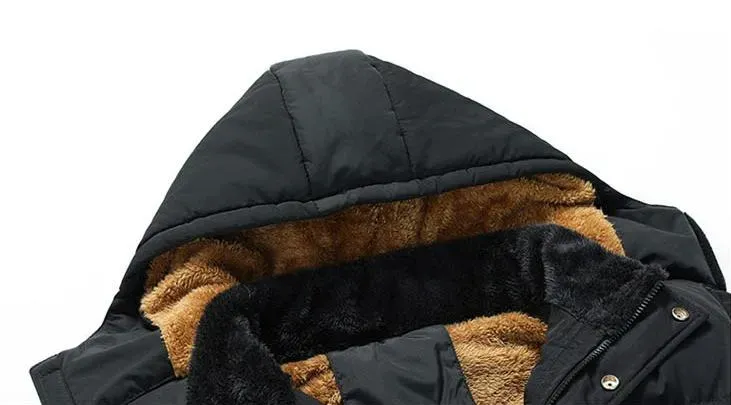 1* Warme mittellange Wolljacke mit Kapuze für Herren