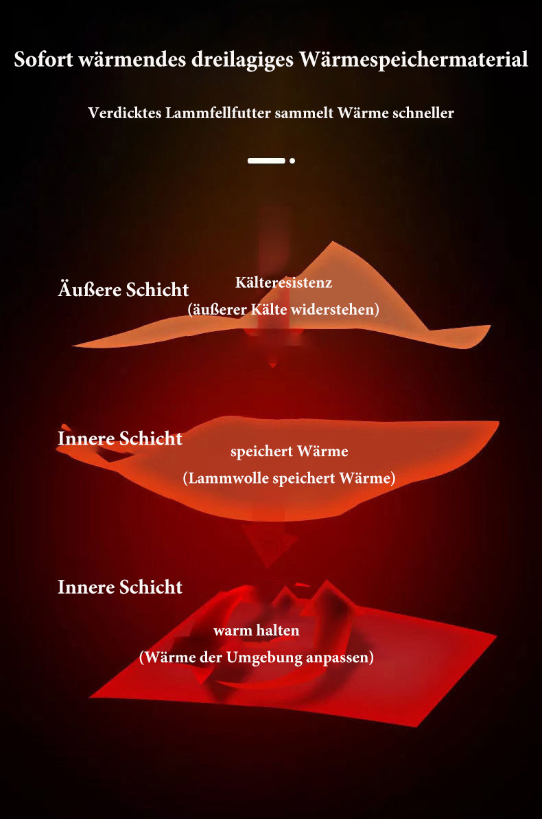 Innenmaterial - Ausgewähltes hochwertiges Lammwollfutter, warm und bequem, weich und zart im Griff. Widersteht effektiv der Kälte im Winter und hält bei kaltem Wetter warm.